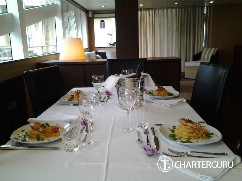VAT must be charged depending on cruising area and port of embarkation. July-August € 52.500/week