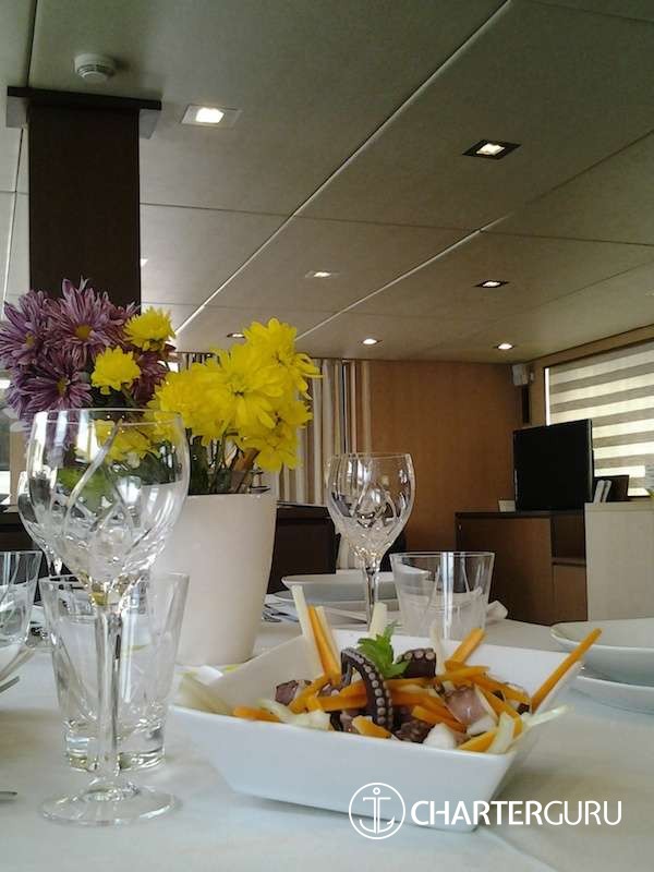 ARIA C is classified as a superyacht. The prominent section of the yacht, spacious aft deck, leads to the attractive and sleek main salon. The main saloon is a well-design space for early mornings or late evenings and serves as a location of entertainment. 5 comfortable cabins are laid out for maximum privacy and comfort.