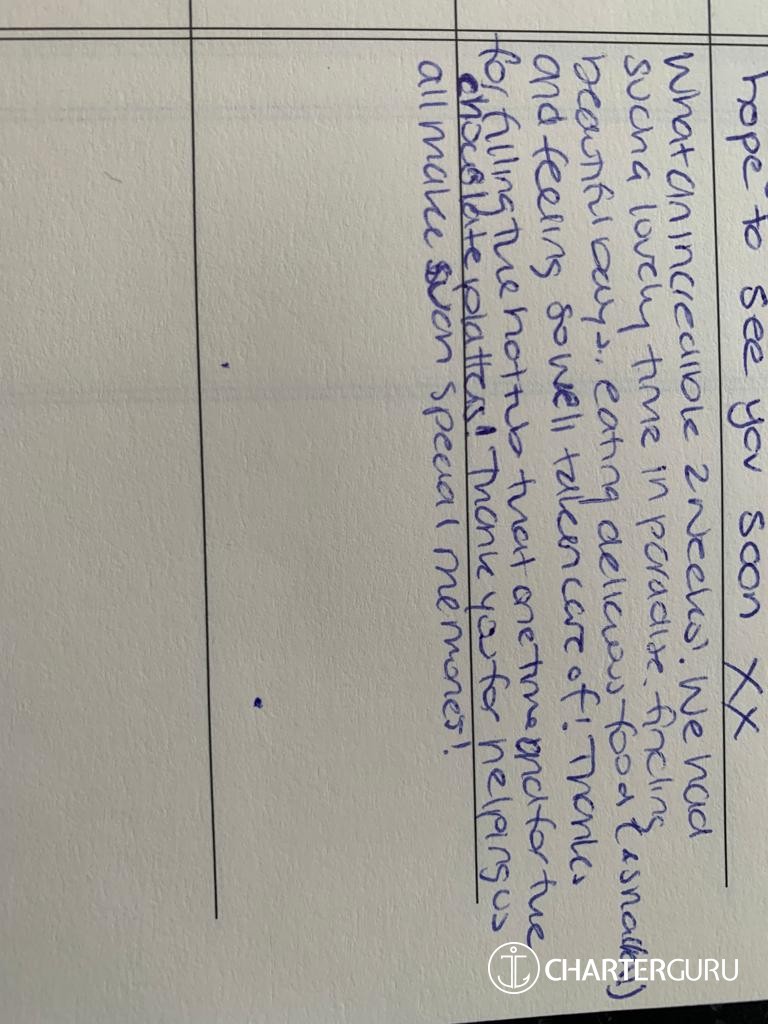 Thank you for these unforgettable moments in Greek Waters. We had an amazing time. Fantastic crew!