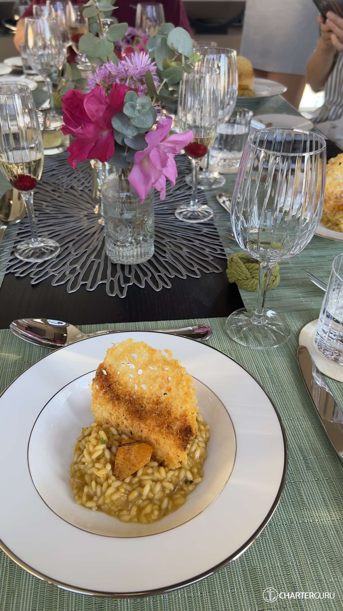The service was incredible, well orchestrated, professional, correct service etiquette was followed. Little touches were noted, like the lime wedges on the table. Gluten free was accommodated (for my dietary preferences) but not to the detriment of the food served. I loved the crew working together when serving the meals with the captain helping. Gave an aura of completeness and VIP service. The 'big boat' experience is evident in the crew.