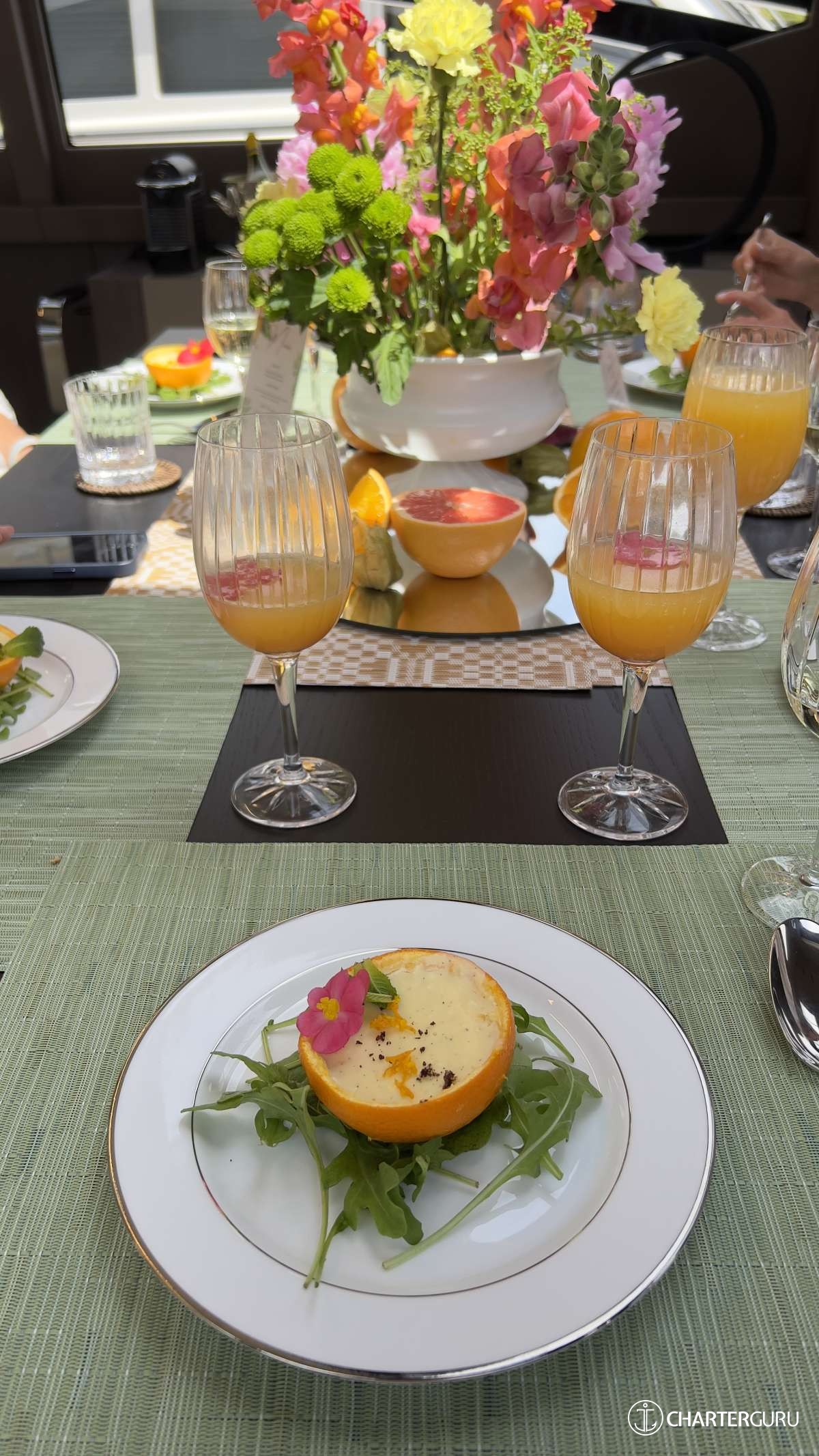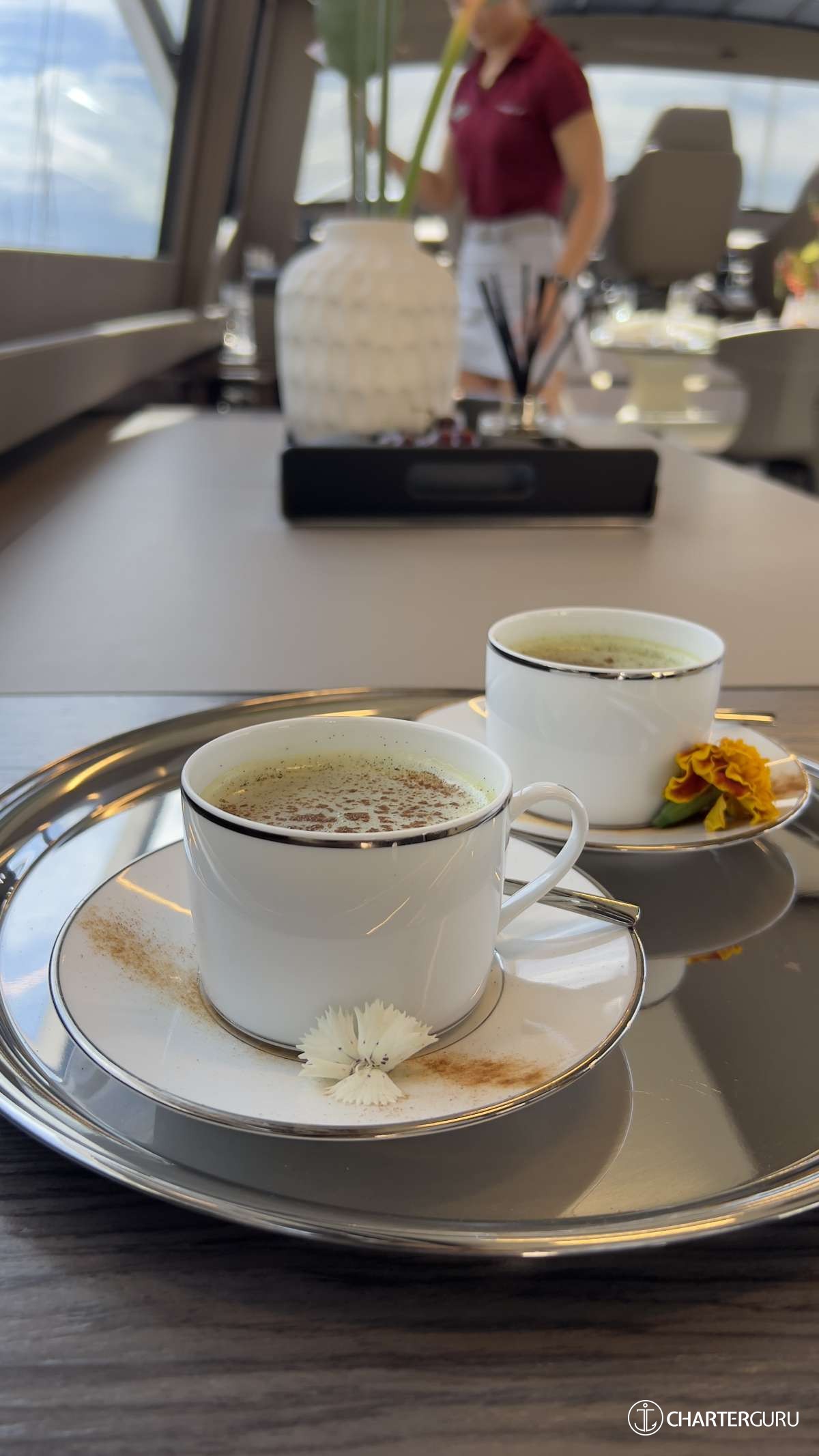 4. How would you describe the level of attentiveness and professionalism of the crew members onboard? The overall service was a warm welcome. Upon arrival, we were greeted with a friendly smile and nice champagne. Table was set immaculately with a colorful flowers, gorgeous glasses and a well design center mat. The quality of service remain consistently high throughout the entire lunch.