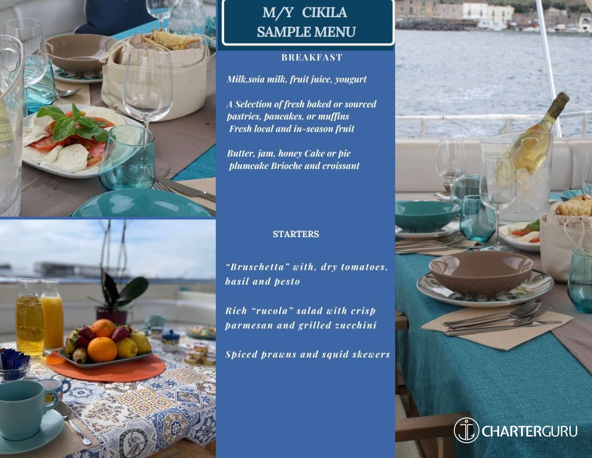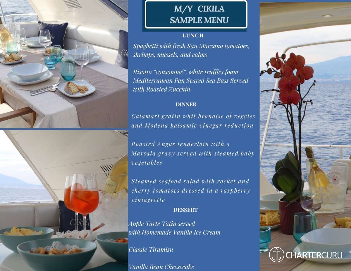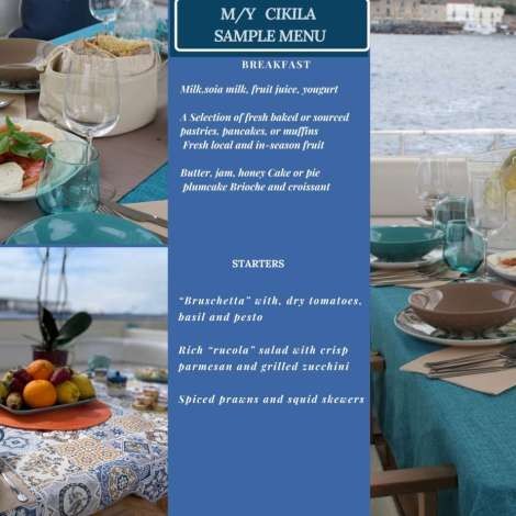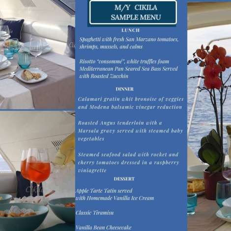 For a motor yacht like CIKILA, the expected APA is 25% to 40% of the charter price (€5,500 - €8,800), making the charter cost €27,500 to €30,800. Exact amount will be confirmed after inquiry.