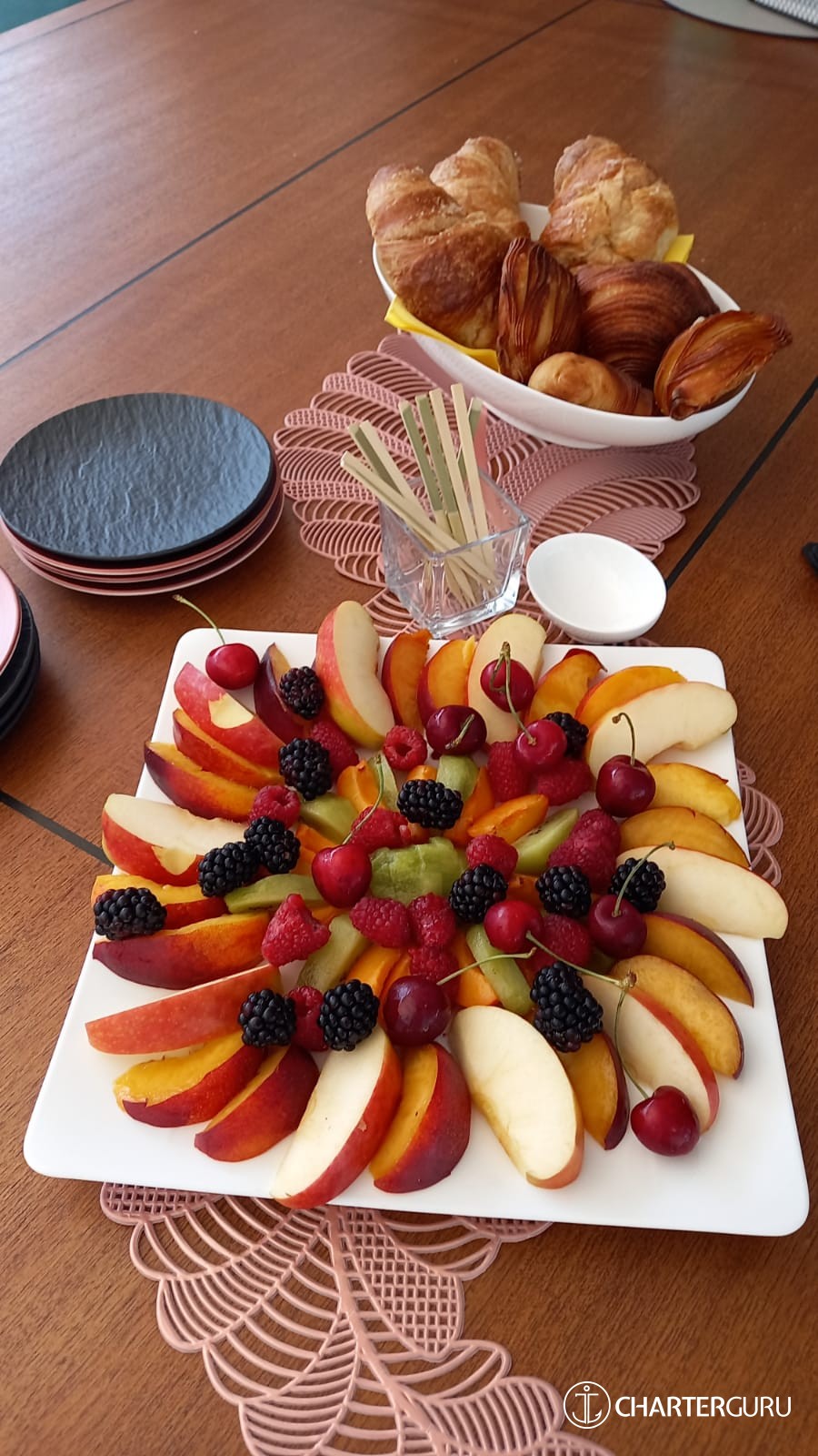 The expenses, such as provisioning, fuel, marina fees, are deducted from the APA. The APA is based on the price of the yacht and ranges from 15% (crewed sailing yachts) to 30% (motor yachts with higher fuel consumption).