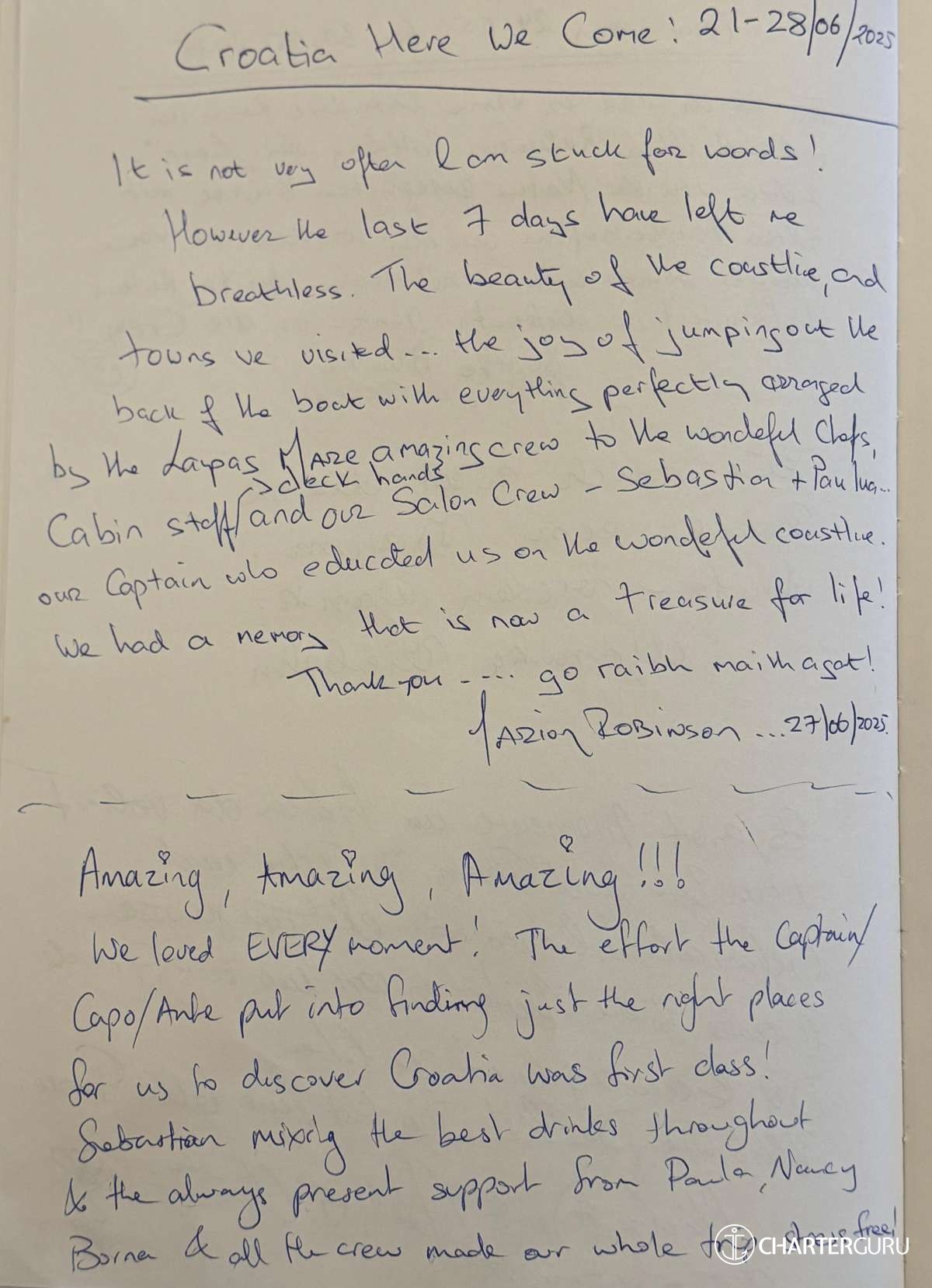 by the Lupus Mare amazing crew, to the wonderful chefs,