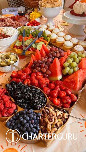 SLEEP ABOARD: Sleep aboard the night before charter date is available for a one- time flat rate of $1500. It includes boarding after 4pm, 1 to 4 cabins, welcome cocktail and canapes plus a light breakfast the next morning. Dinner and other drinks are to be taken ashore at clients expense.