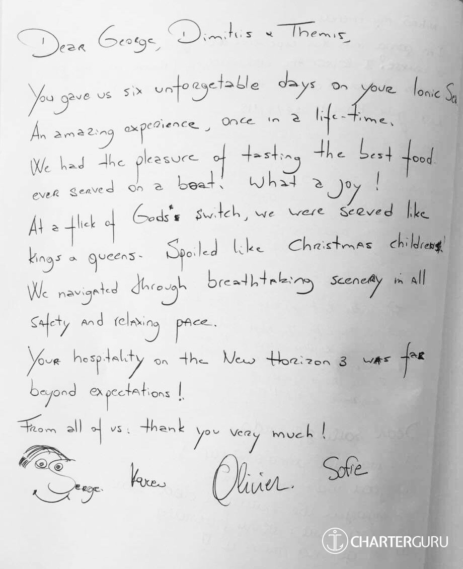 For a sailing catamaran like NEW HORIZONS 3, the expected APA is 20% to 35% of the charter price (€3,900 - €6,825), making the charter cost €23,400 to €26,325. Exact amount will be confirmed after inquiry.