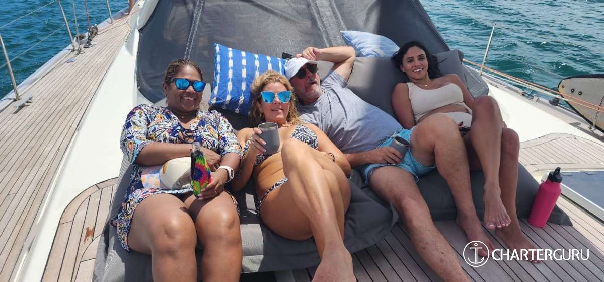 Sailing yacht OCEAN PHOENIX is ideal for friends and families alike and boasts plenty of exterior living space. The main cockpit has an alfresco dining option, with wrap around seating and Bimini cover. Aft of the cockpit is the helm station with dual helms and seating. Charter yacht OCEAN PHOENIX has a generous beam with her side decks lead to an expansive foredeck, perfect for sunning and relaxing. Her large fold-down transom ensures effortless water access for everyone.