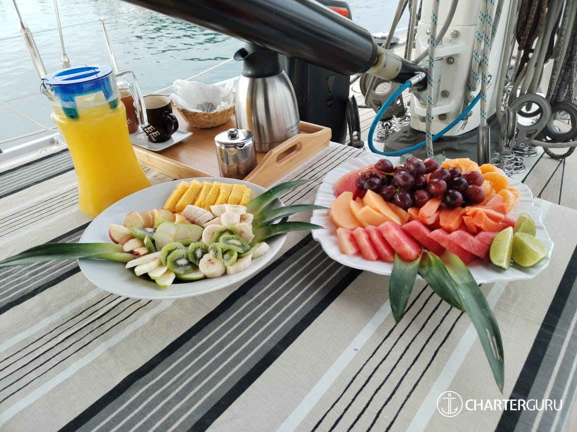 Ocean Phoenix sleeps up to 6 guests in 3 double cabins. One of the cabins offers an additional upper Pullman berth which is ideal for children. She is a modern Yacht, spacious, light and airy. All guest accommodations are forward of the salon ensuring optimum privacy. Each cabin boasts private en-suite facilities with showers.