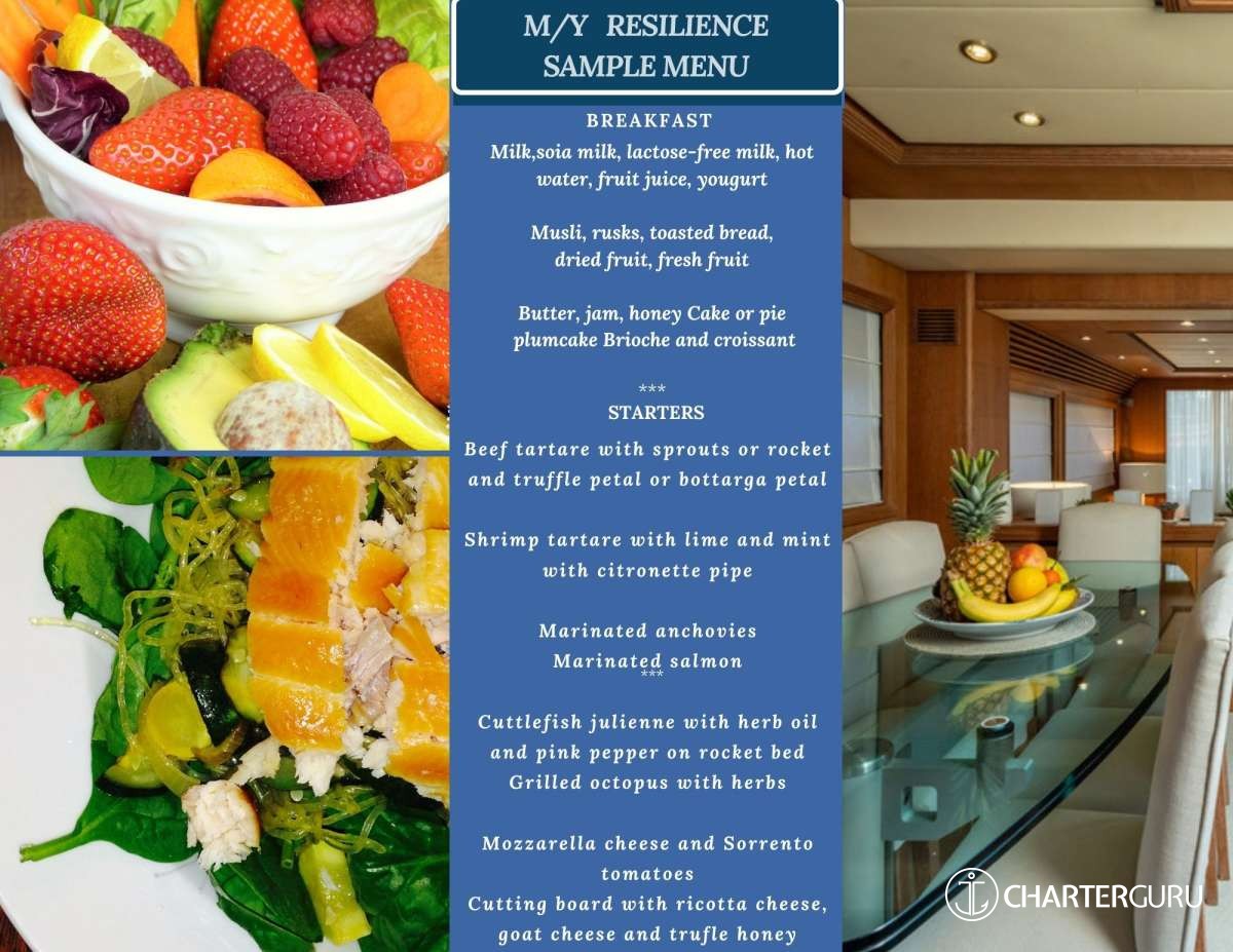 For a motor yacht like Resilience, the expected APA is 25% to 40% of the charter price (€7,000 - €11,200), making the charter cost €35,000 to €39,200. Exact amount will be confirmed after inquiry.