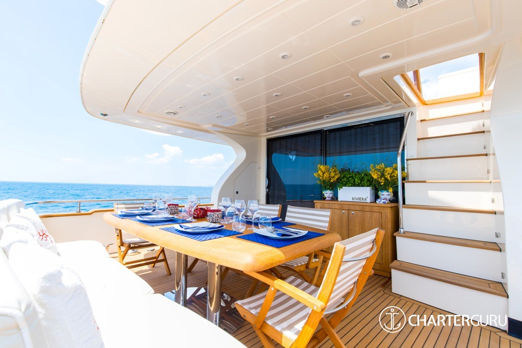 The wonderful MY Riviera, with her polished interiors, her ample deck spaces and her top speed of 35 knots, will safely and comfortably transport her guests for incredible journeys at the discovery of the breathtaking Mediterranean coasts.