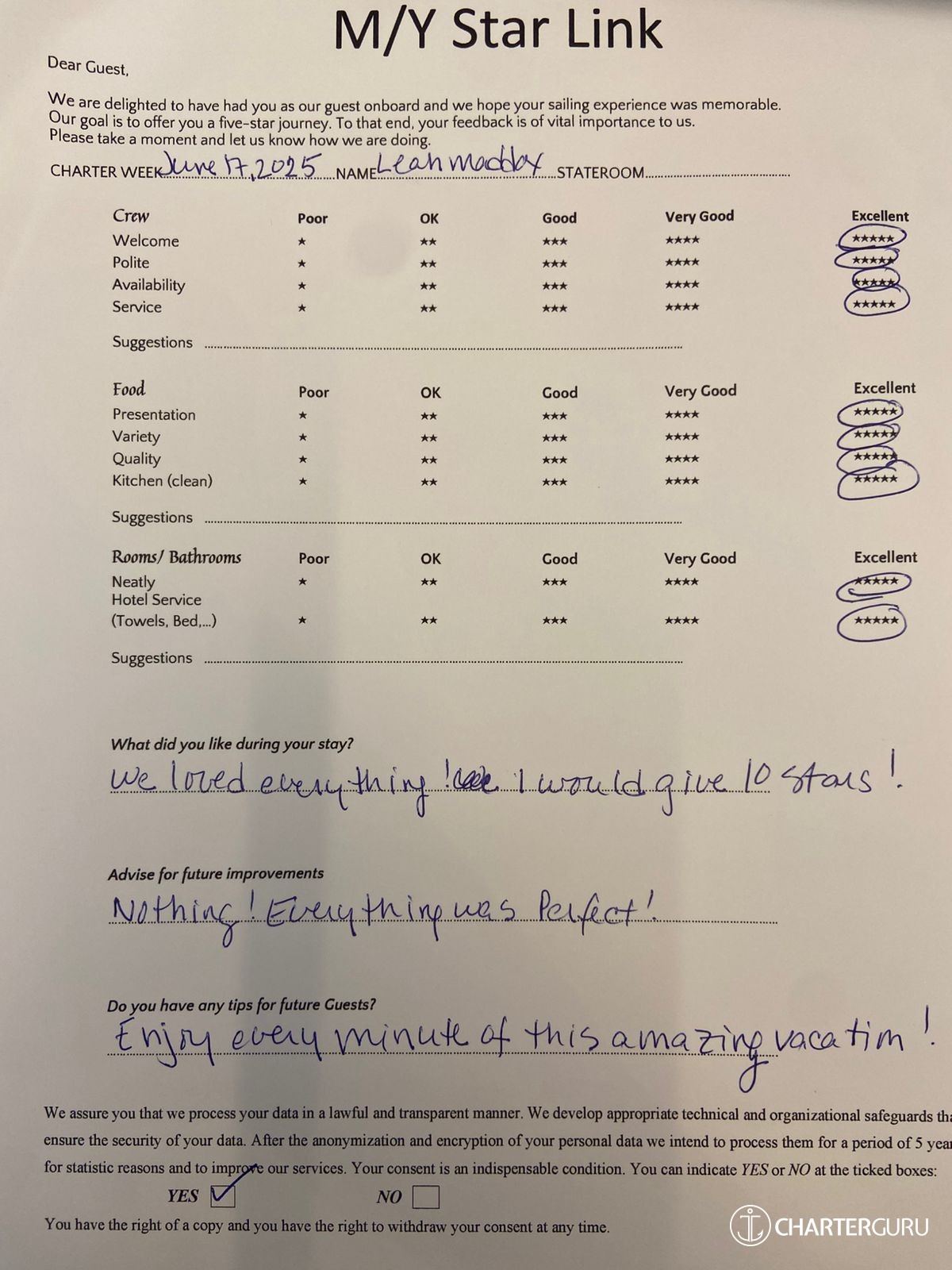 Whether you’re chasing excitement or tranquility, Star Link is the ultimate way to experience the Greek Islands — a yacht where luxury, adventure, and heartfelt service come together in perfect harmony.